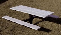 !±8± 4 Surface Mounted Square Tubing Single Pedestal Picnic Table With 2" x 10" x 4 Redwood Stained Pine Planks